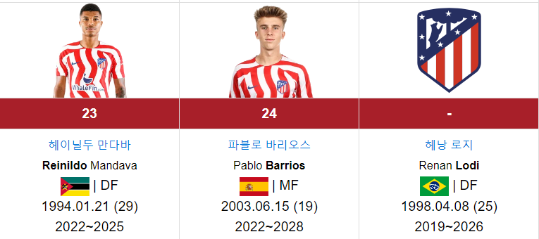 AT마드리드는 스페인 마드리드를 연고지로 하고 있는 팀으로, 1903년 창단하였습니다. 역대 기록으로는 라리가 우승 횟수 3위, 유로파리그(UEFA) 우승 3회 기록을 보유한 팀입니다. 2022-2023 시즌 라리가 순위는 3위를 기록했습니다.