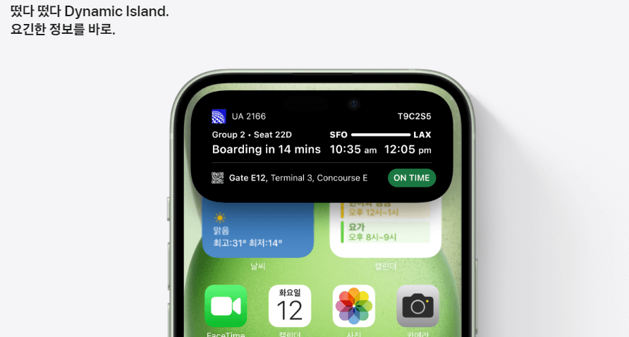 * 다이나믹 아일랜드 : 각종 알림과 '실시간 현황' 정보를 그때그때 띄워주는 팝업창