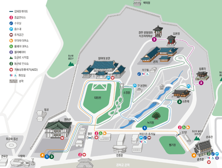 녹지원 - 상춘재 - 구 본관터 - 본관 - 영빈관